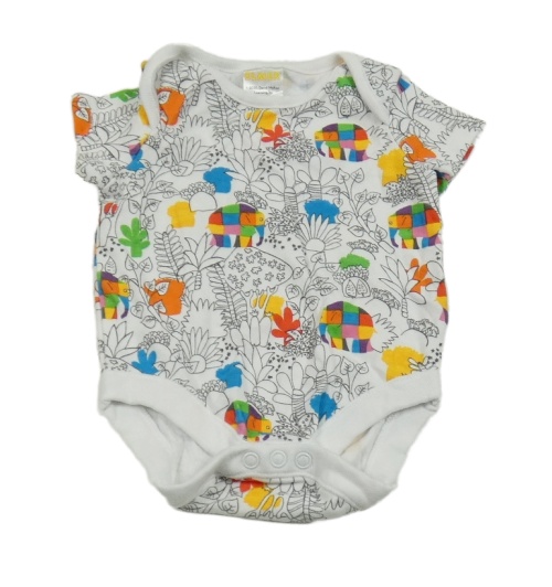• Bílé body s kytičkami a palmami a barevnými sloníky ELMER