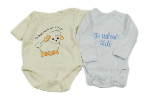 2x body - bílé zavinovací s nápisem + smetanové s ovečkou