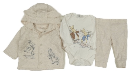 3set - Bílé body s králíčky + béžová melírovaná propínací mikina s kapucí + béžové lehké tepláky