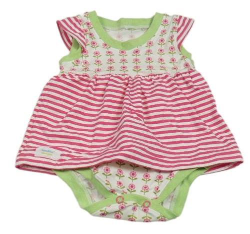 • Bílo-růžovo-zelené květované body s našitou pruhovanou sukní