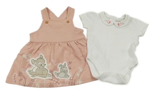 2set - Bílé body s květovaným límečkem + růžové laclové šaty s Bambim Disney