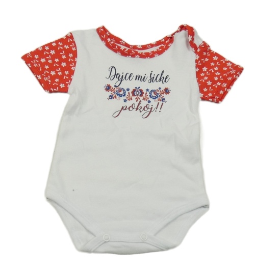 Bílo-červené kytičkované body s nápisem