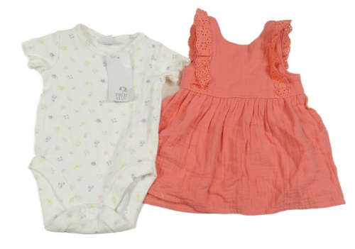 2 set - bílé žebrované body s květinami + růžové šaty s madeirou