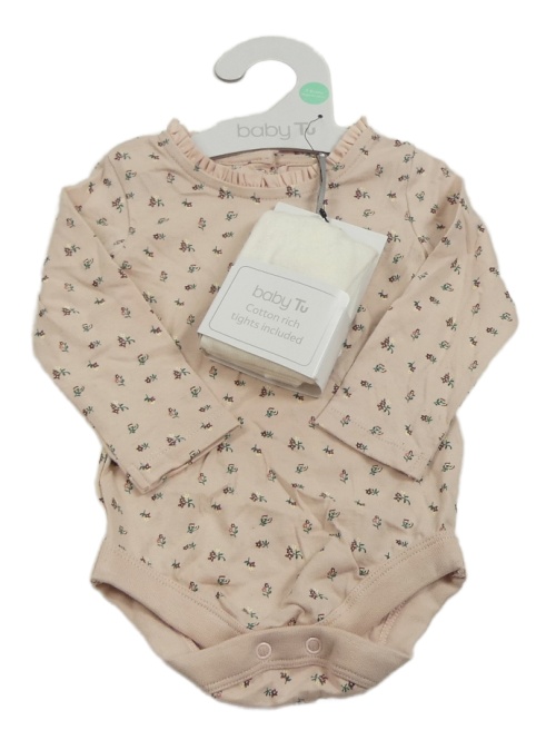 • Nové - 2 set - světlerůžové květované body + bílé punčocháče Tu
