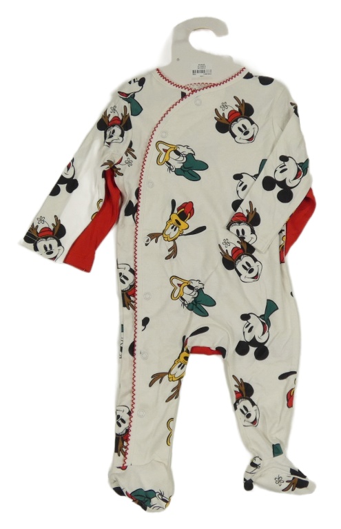 Nové - 3set - Červené body s Mickeym a Plutem + bryndák + bílý overal s Mickeym a kamarády Primark
