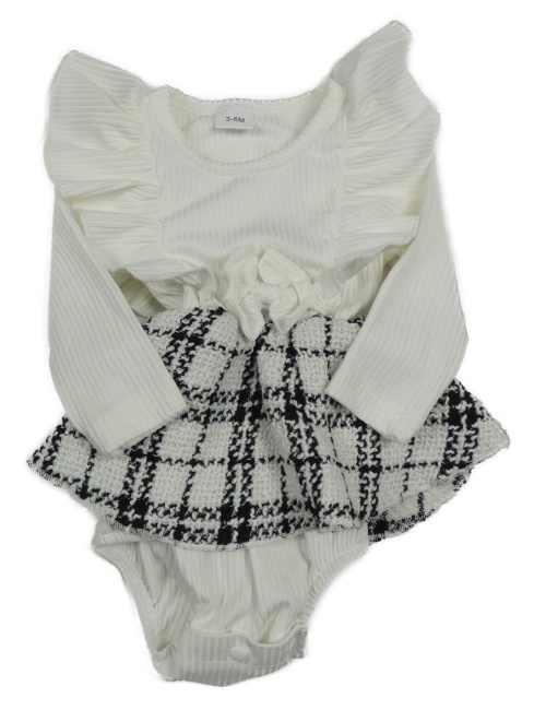 • Bílé žebrované body s úpletovou kostkovanou sukní a volánky