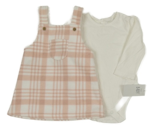 Nové - 2set - Bílé žebrované body + bílo-růžové kostkované fleecové laclové šaty George