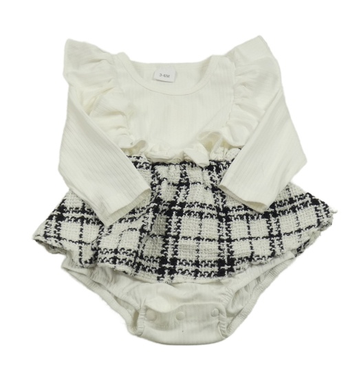 Bílé žebrované body s volánky a kostkovanou sukní
