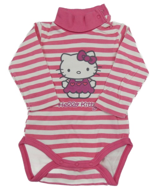• Tmavorůžovo-bílé pruhované body s Hello Kitty a rolákem Sanrio