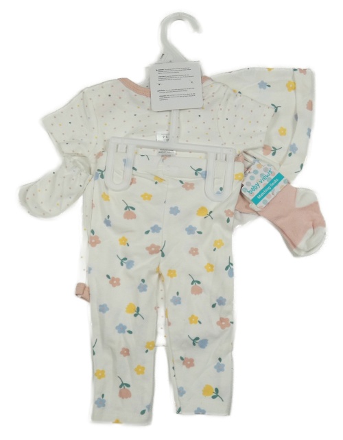• 6set - bílé legíny s kvítky + bílé puntíkaté body + slinták + čepice + ponožky + rukavice