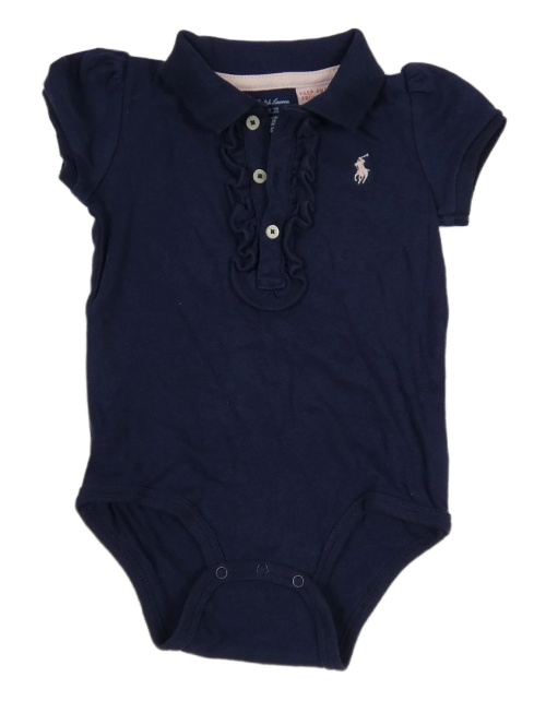 Tmavomodré body s logem a volánky a límečkem Ralph Lauren