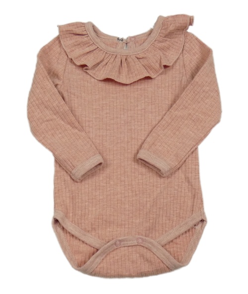 • Růžové melírované žebrované body s volánkem Hello Baby