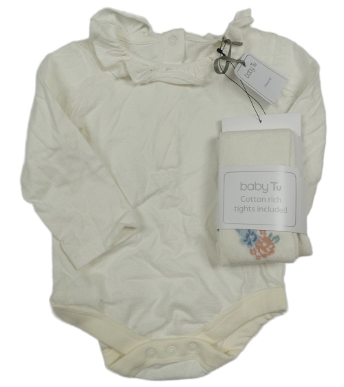 Nové - 2 set - bílé body s límečkem + bílé punčocháče s květy Tu