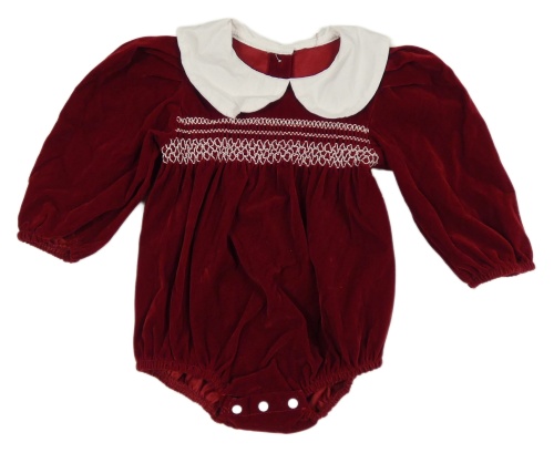 • Tmavočervené sametovo/manšestrové body s výšivkou a bílým límečkem