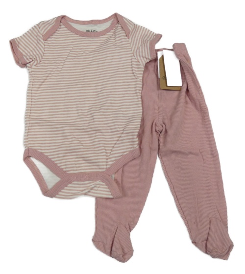 Nové - 2set - Bílo-starorůžové pruhované body + žebrované polodupky Chick Pea