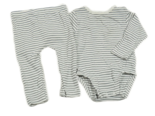 2 set - bílo-zelené pruhované žebrované body + lehké tepláky Zara