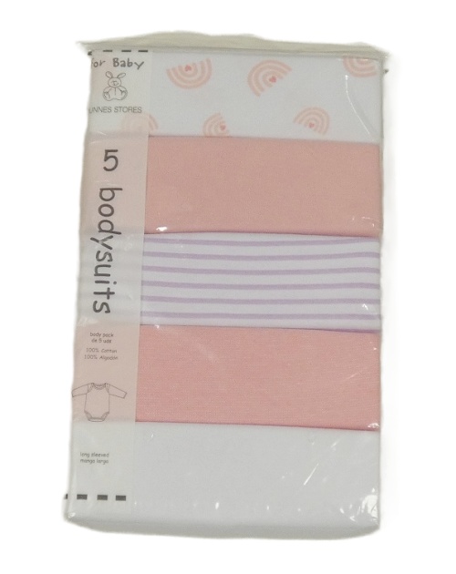 • Nové - 5pack - 2x - růžové + 3x bílé body se vzorem a dlouhým rukávem Dunnes