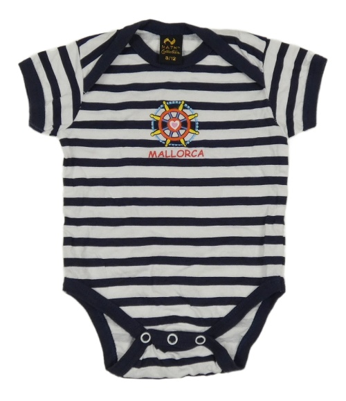 Bílo-tmavomodré pruhované body s nápisem