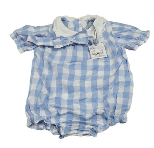 • Nové - 2set - Modro-bílé kostkované plátěné body s límečkem + čelenka Tu