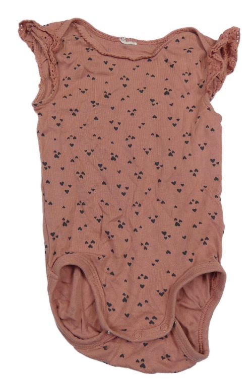 Růžové body se srdíčky a krajkou na rukávech