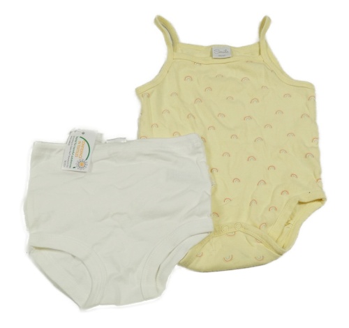 • 2set - Žluté body s duhami + bílé plenkové kalhotky s volánky