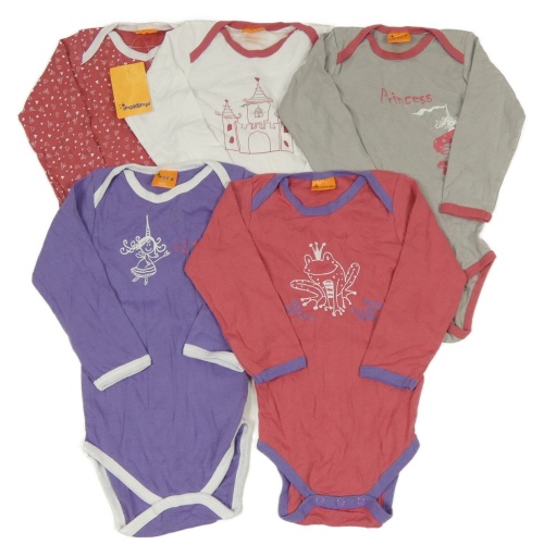 tmavofialovo/bílé s vílou, jahodovo/tmavofialové se žabičkou, jahodovo/bílé s korunkami a srdíčky, bílo/jahodové se zámkem, šedo/jahodové s muchomůrkou, nové