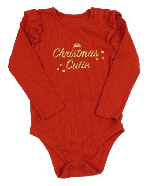 • Červené žebrované vánoční body se zlatými nápisy a korunkou a volánky Nutmeg
