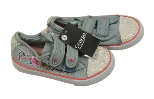 • Nové - Světlemodro-bílé plátěné botasky s kamínky a květy George vel.26