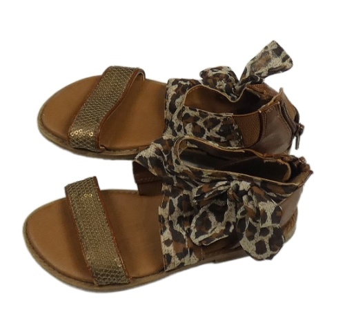 Hnědé koženkové sandály s flitry s mašlí Cupcake vel. 27
