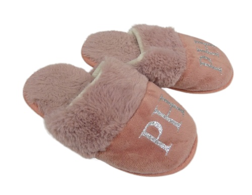 Růžovo-starorůžové plyšovo/chlupaté bačkory s písmenky vel. 28-29