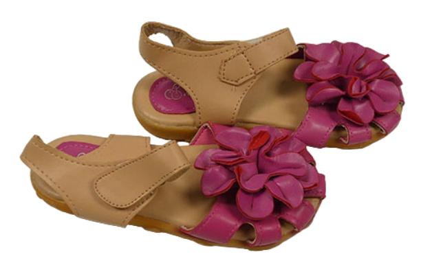 Fuchsiovo-hnědé koženkové sandály s 3D aplikací vel. 27