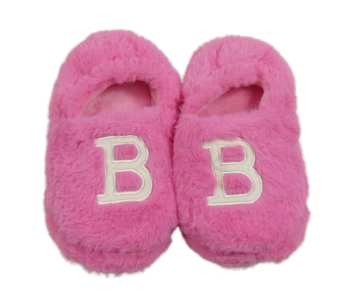 Neonově růžové chlupaté bačkory s písmenem vel.32