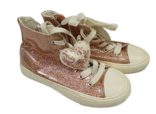 • Starorůžovo-bílé třpytivé koženkovo/gumové kotníčkové tenisky PRIMARK vel. 32