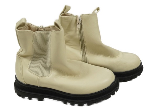 • Nové - Smetanovo-černé koženkové kotníkové boty Studio vel. 32