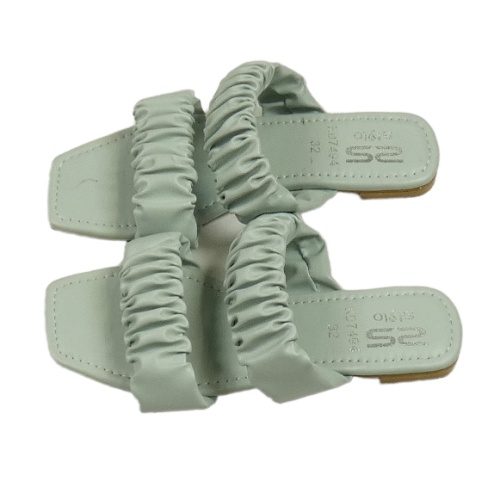 Světlemodrošedé koženkové pantofle s nařasením vel. 32