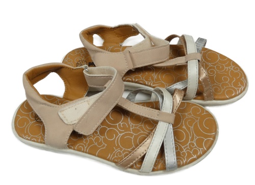 Pudrovo-stříbrné koženkové páskové sandály Pepperts vel.33