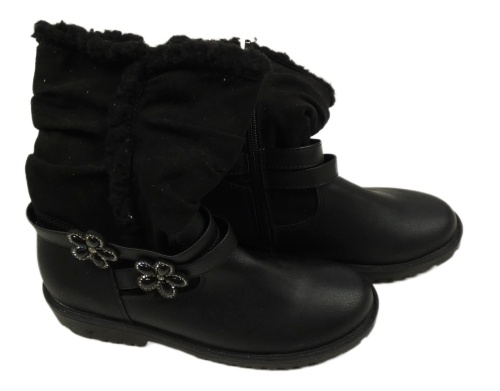 • Nové - černé koženkovo/textilní kozačky s květy s kamíny vel. 34