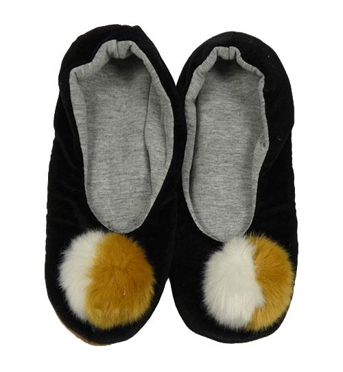 Černé sametové domácí bačkory s bambulí vel. 35