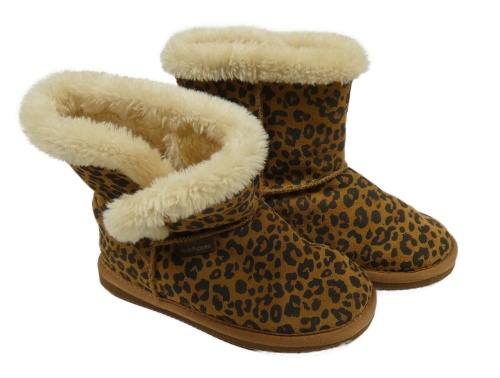 Hnědo-černé vzorované semišové zateplené válenky s kožešinou vel. 36