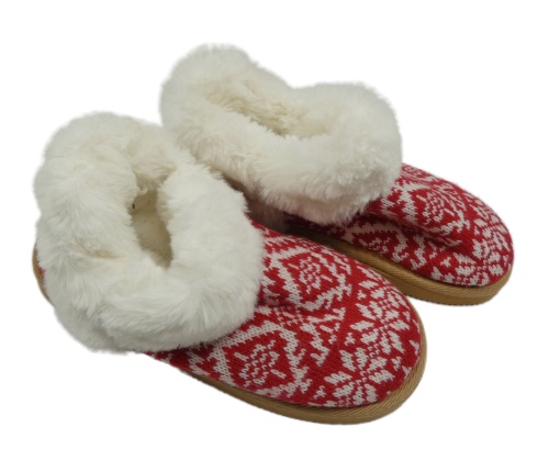 Nové - Červeno-bílé vzorované pletené zateplené domácí bačkory vel. 37