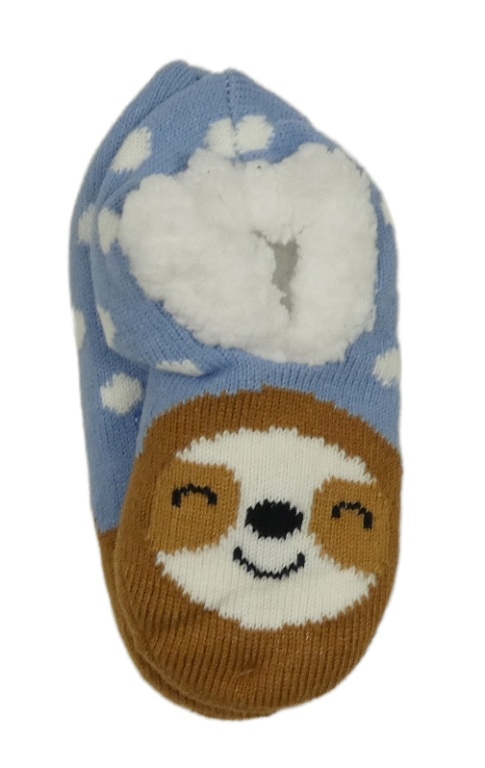 Nové - modro-hnědé pletené zateplené bačkory s puntíky a lenochodem vel. 37