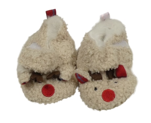 • Béžové huňaté vánoční zateplené válenky se soby vel. 15