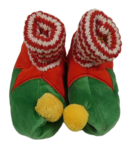 • Zeleno-červené plyšové zateplené bačkory - elf vel. 16