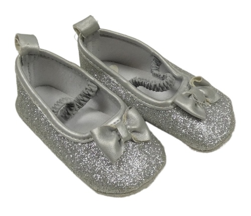 Stříbrné třpytivé plátěné capáčky s mašlí vel. 17