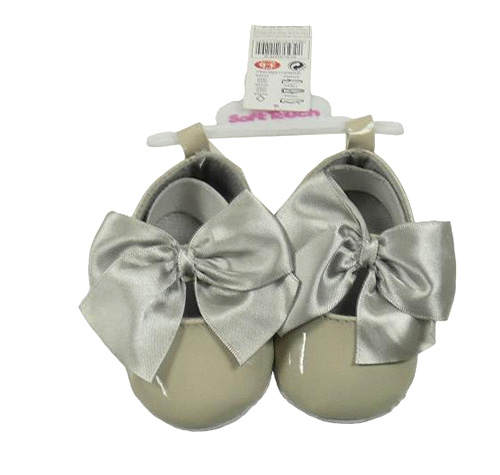 Nové - Šedé lakované capáčky s mašlí vel. 17