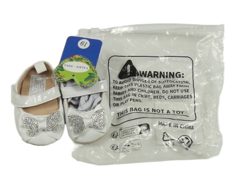Nové - Bílé koženkové capáčky s mašlí s kamínky vel. 19