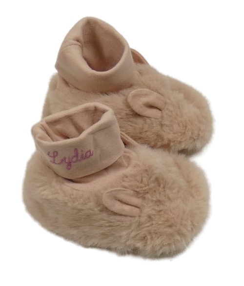 Světlerůžové chlupaté capáčky s nápisem a oušky
