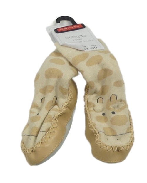 Nové - béžové koženkovo/semišové capáčky s ponožkou se žirafou Tu vel. 20