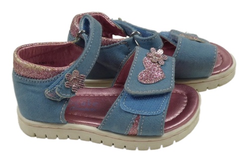 Modro-starorůžovo/třpytivé textilní sandály se srdíčkem a květem Cupcake vel. 21