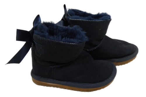 Tmavomodré semišové zateplené válenky s mašlí vel. 24